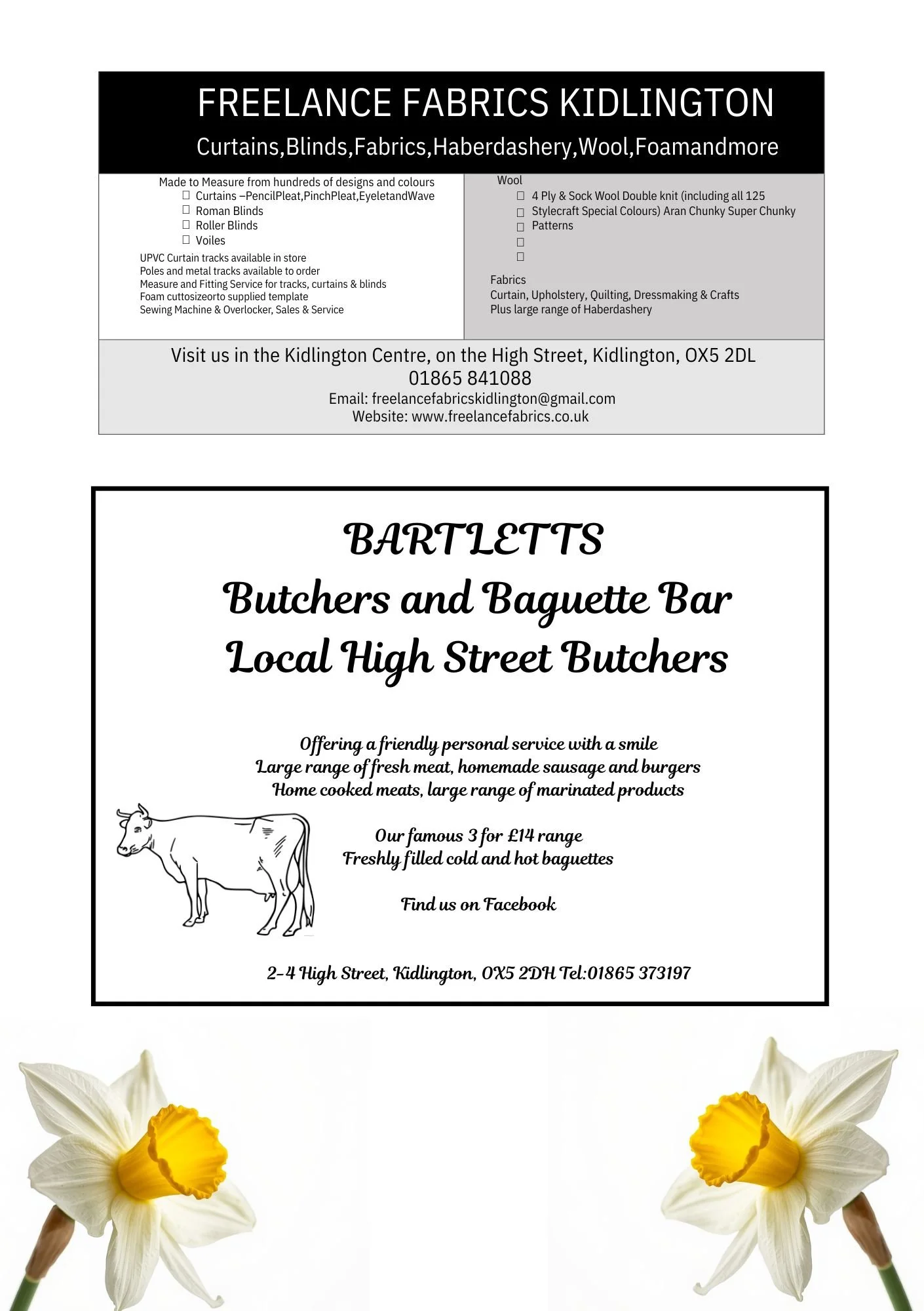 Jerrams Brothers Funeral Directors, Bartlett’s Butchers and Baguette Bar, Alistair Redhouse, Freelance Fabrics, Biggles Hair Studio